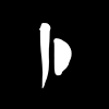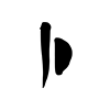 Une sculpture noire en forme de bâton, avec une texture irrégulière, placée contre un fond blanc.